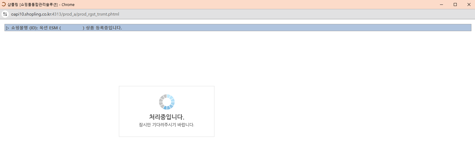 ★ 등록전송하시려는 상품의 수와, 쇼핑몰 ID의 갯수에 따라 상품등록송신 버튼을 클릭 한 후, 화면전환에 시간이 걸리는 경우가 있습니다.