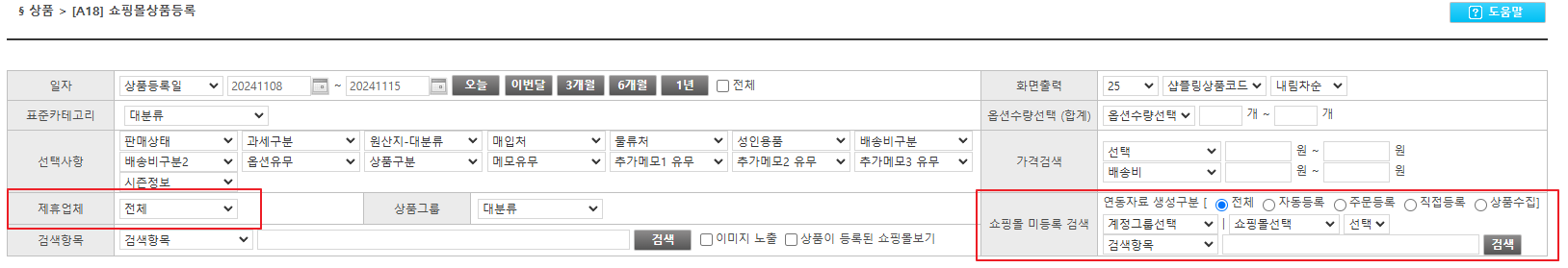 - 해당 항목을 선택하면, 선택된 제휴업체에서 가져온 상품만 검색되게 됩니다.