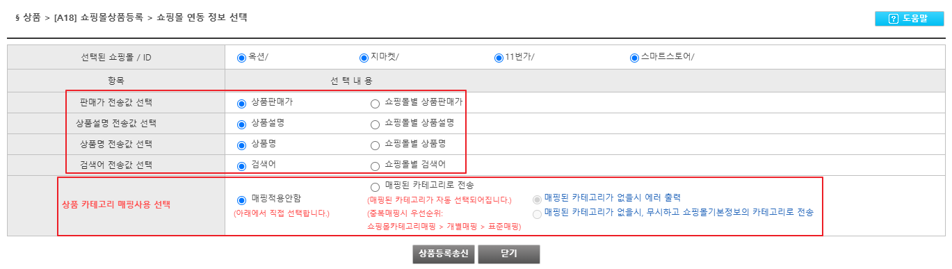 - 상품 DB에 있는 쇼핑몰별 정보로 전송할 때 선택합니다.